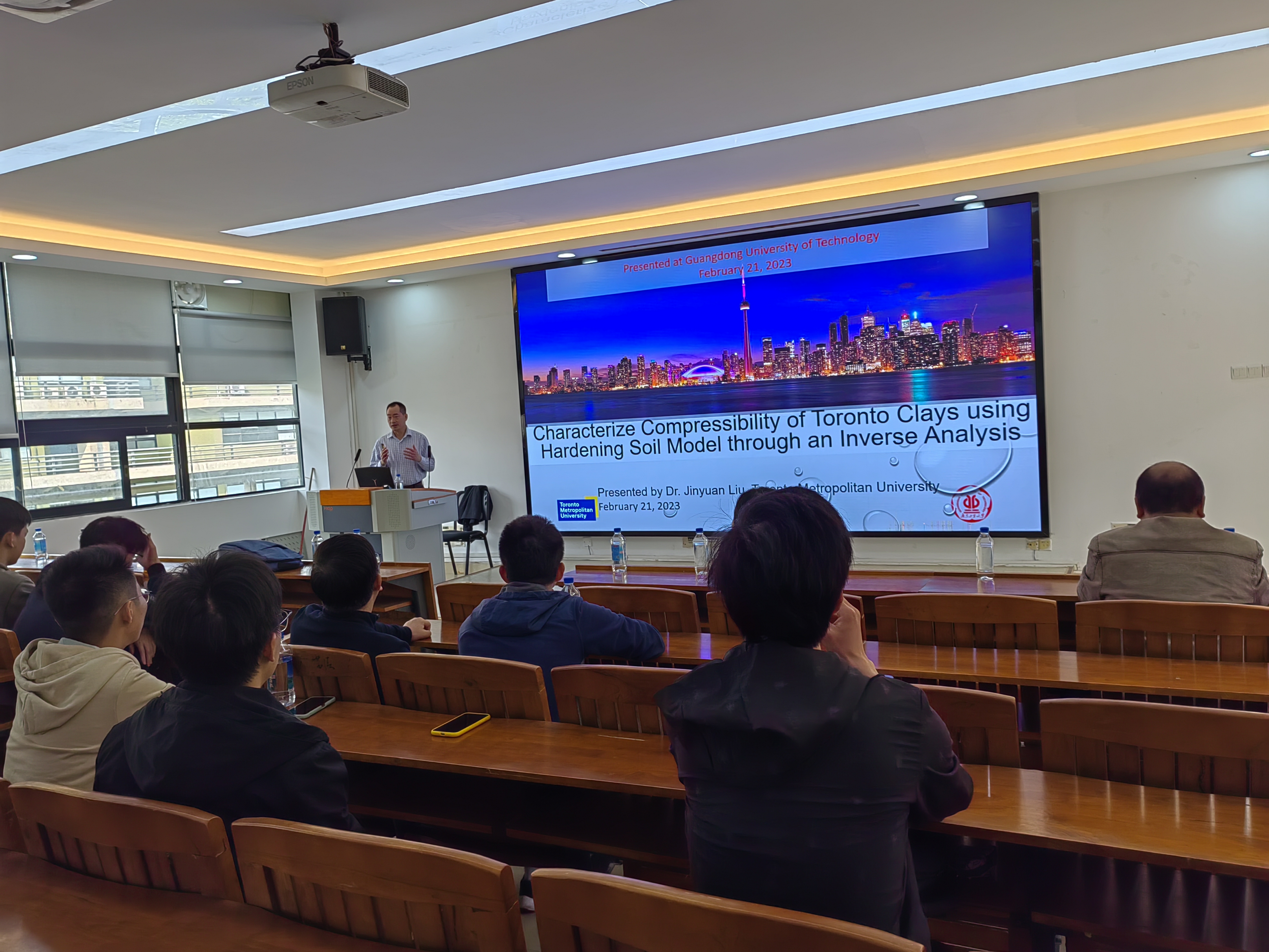 2023年2月21日,加拿大多伦多大都会大学(原瑞尔森大学)教授、岩土工程专家、透明土模拟技术专家、纽约大学和同济大学双学位博士、刘金元教授应邀为我院师生作题为《基于反分析的多伦多粘土压缩特征的研究》学术报告,报告由袁炳祥教授主持,参与本次讲座的老师还有杨雪强教授,梁仕华教授,王婉莹副教授,罗庆姿副教授,侯振坤高级工程师。