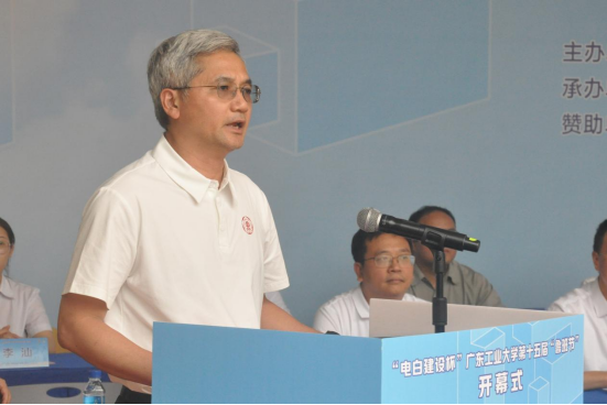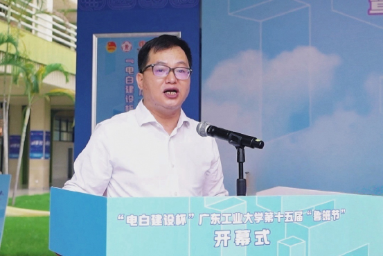 5月27日下午,“电白建设杯”第十五届“鲁班节”学生学术科技竞赛系列活动开幕式在大学城校区教六公共平台路演场地隆重举行。学校党委副书记陈卓武、广东电白建设集团有限公司董事长廖国维、教务处处长杨文斌、党委学生工作部部长许泽浩、校团委书记王亚煦、创新创业学院院长谢光强、漫画柜