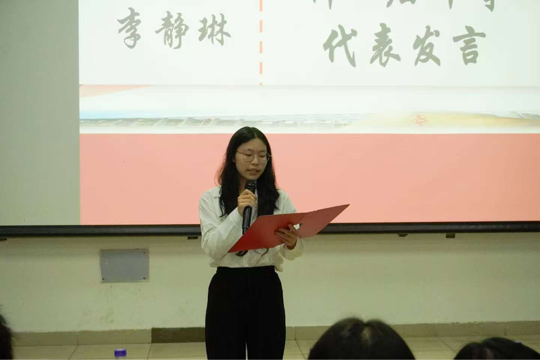大会在庄严的氛围中拉开帷幕。学院团委书记刘思利老师首先致辞,她对2025级一百五十余名新干事的加入表示热烈欢迎,并围绕“服务同学、锻炼自我”的主题,勉励全体成员不忘初心、勇于担当,在服务集体中实现个人成长。刘老师对学生干部提出三点期望:一要坚定理想信念,筑牢思想根基;二要锤炼过硬本领,提升综合素养;三要始终以服务同学为宗旨,当好广大同学的贴心人与代言人。