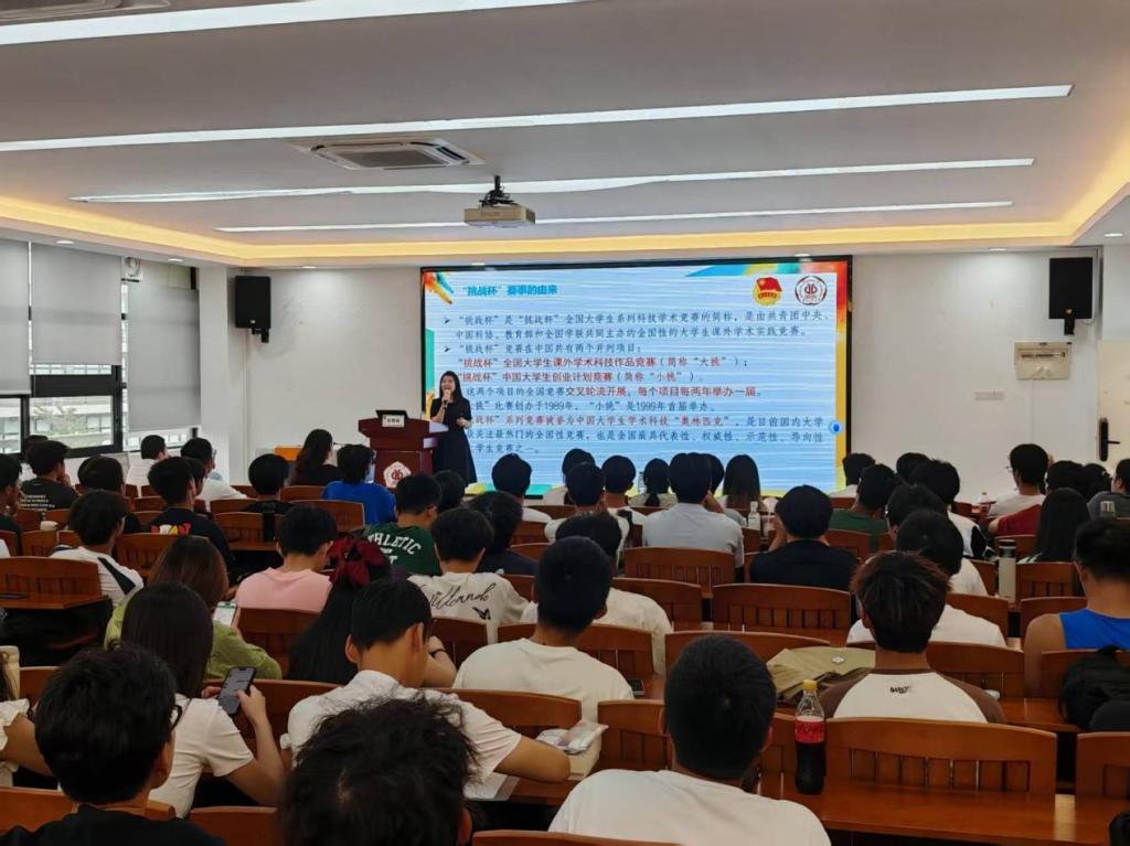 10月24日,学院选拔赛在大学城青春报告厅举行。创新创业学院副院长许金镇、广州明略投资总经理廖俊、学院党委副书记陈颂坚、校团委吴静婷、学院学工办主任张建坤担任评委,100余名学生现场观摩。