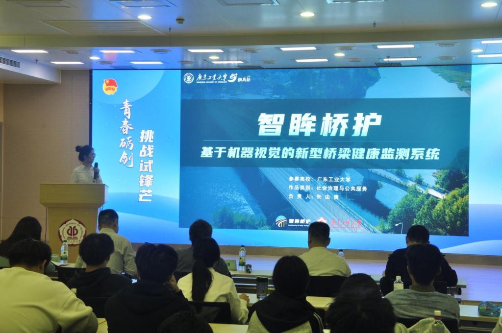 11支参赛队伍依次路演,项目涵盖科技创新、社会治理、生态文明、乡村振兴等领域,涉及新材料研发、生态保护、桥梁监测、灾害预警等方向。各团队现场答辩,展现出良好的创新思维与实践能力。