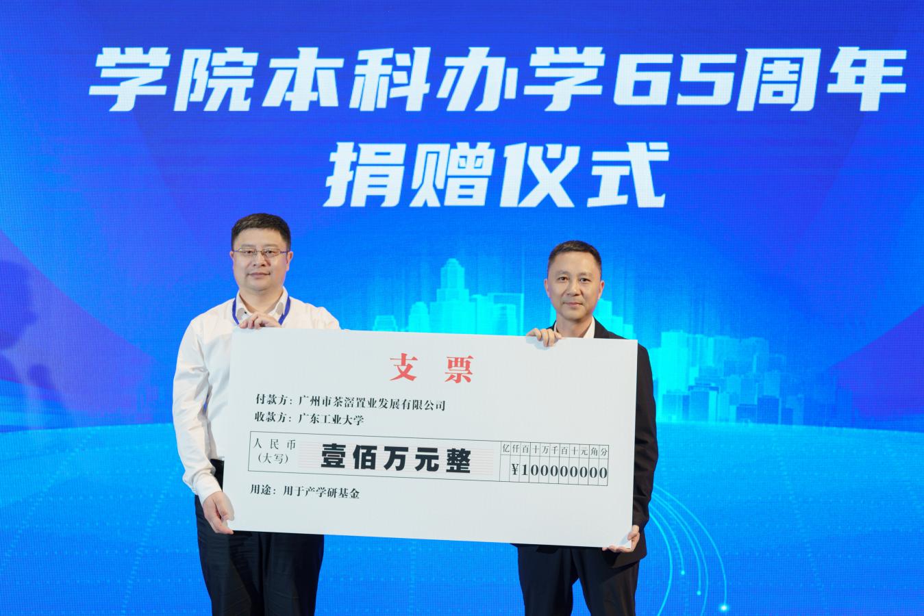 随后,年会举行了本科办学65周年产学研合作及捐赠仪式。学院与广东嘉元科技股份有限公司达成产学研合作,院长赵志伟为广东茶滘置业发展有限公司、中穗丰华建设咨询有限公司、2002级土木4班集体等18个大额捐赠企业代表和校友代表颁发捐赠证书,感谢校友及社会各界人士对学院事业发展的大力支持。