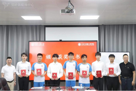 接着,学院党委副书记陈颂坚宣读了《关于颁发2023年中海达奖学金的决定》。本次共12名学生获奖,其中获中海达一等奖学金2名,获中海达二等奖学金4名,获中海达三等奖学金6名。李典斌和周建强为7位获奖学生代表颁发奖学金证书。