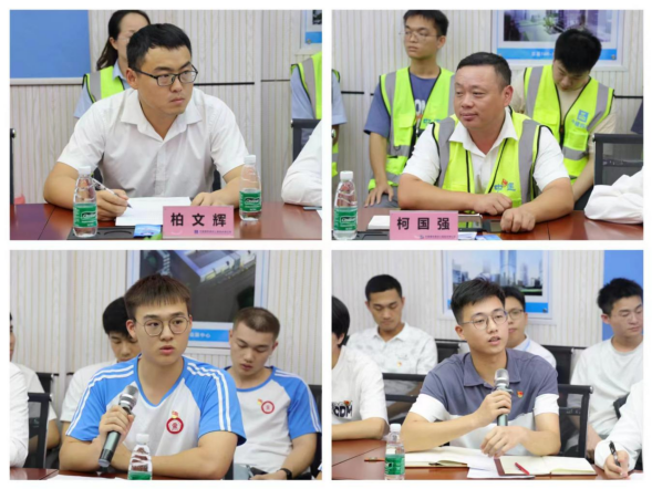 四局科创大厦项目部党支部书记柯国强和科创大厦项目总工柏文辉结合工作实际进行了经验交流,与会学生党员表示收益颇丰,各自分享了学习体会。