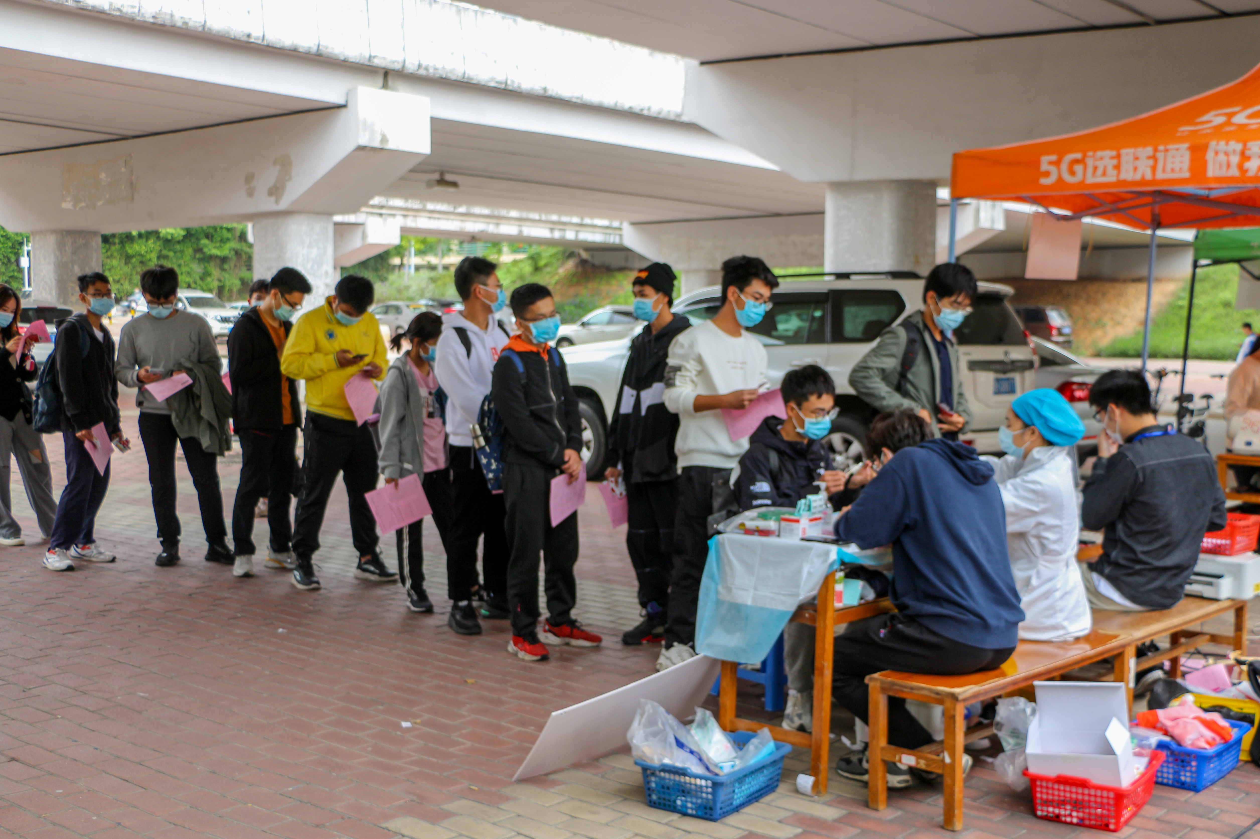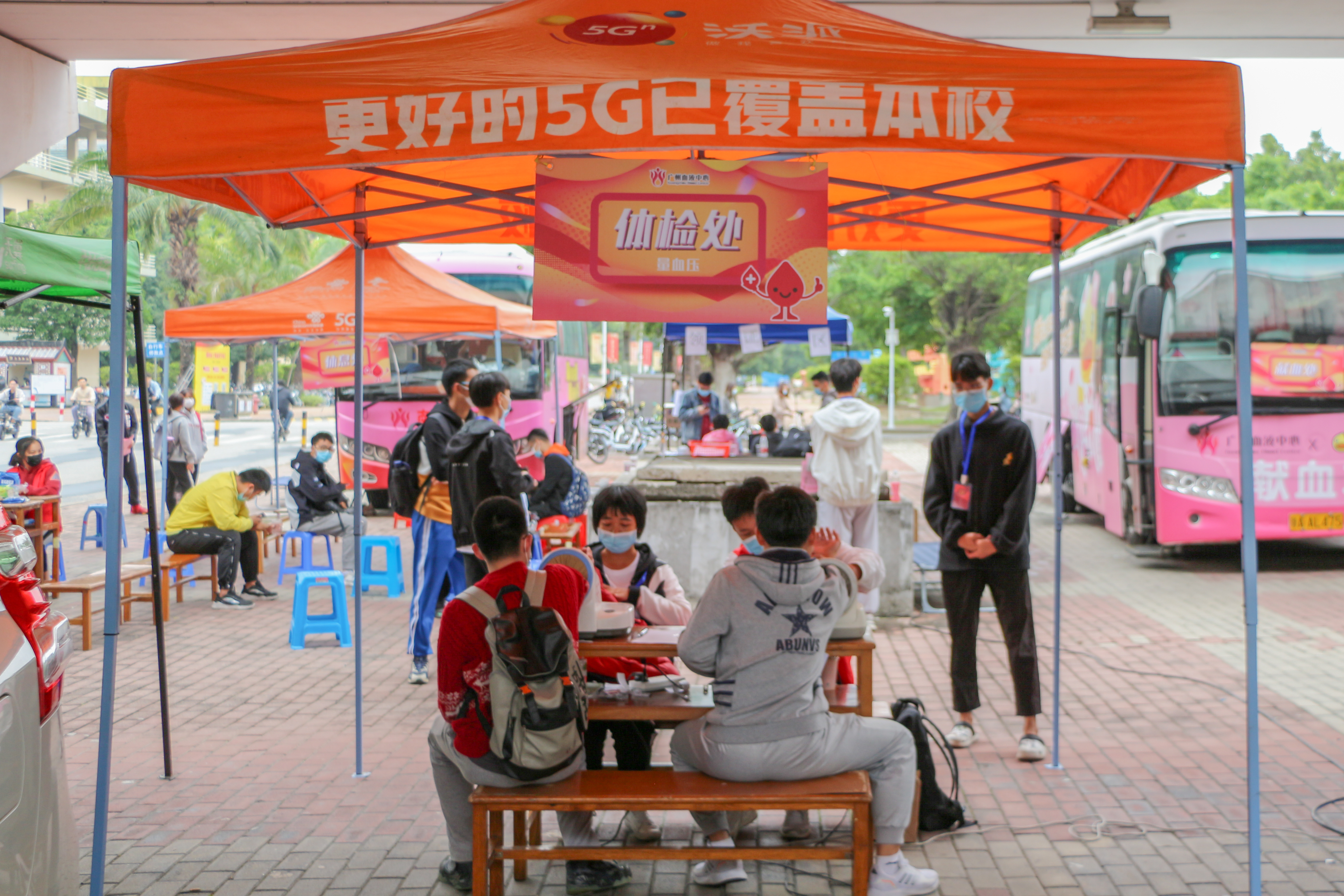 大学城校区广工天桥下方举办了本学期我院首次义务献血活动。