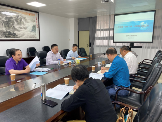 刘锋院长汇报了我院土木工程一级学科博士点申报工作的具体情况,分析了我院土木工程学科目前存在的短板与不足,并提出了后续工作的设想与建议。