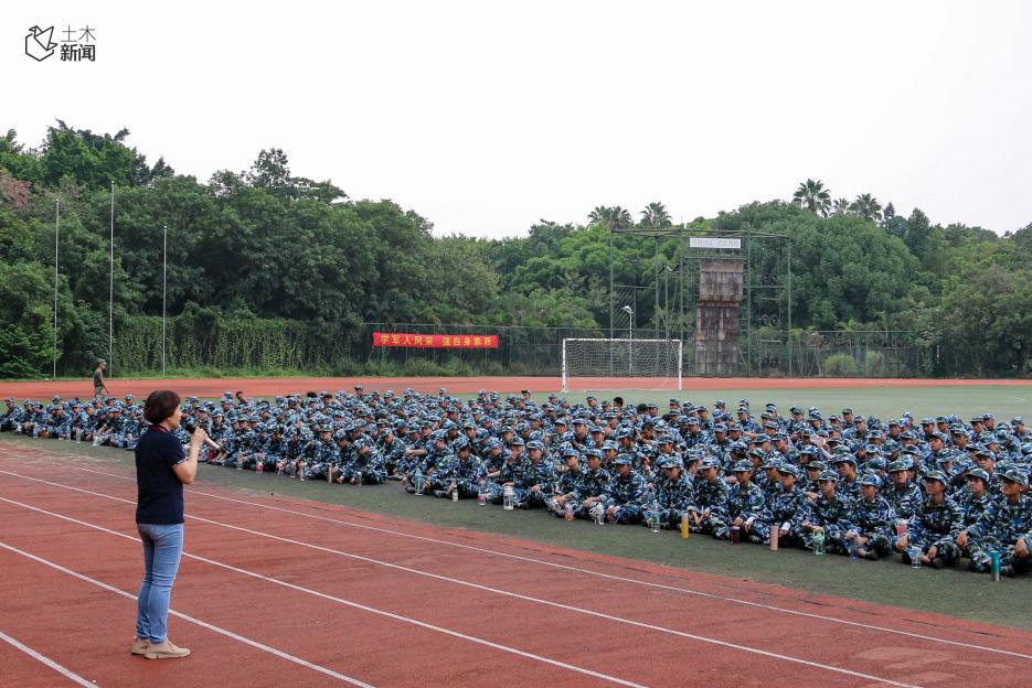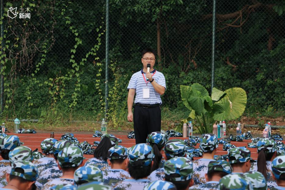 接着,陈颂坚副书记从每天早上来观看学生们军训讲起。他指出同学们存在的不足之处。同时,询问同学们是否怕苦怕累。同学们以洪亮又统一的声音回复陈副书记:“我们不怕苦,不怕累”。陈副书记然后跟同学们介绍学校的历史传统并强调土木学院是有着悠久红色基因以及军人血脉的学院,希望同学们可以继承师兄师姐的精神,发扬光大土木行业,为国家的基建作出贡献,为未来的工作做准备。并强调军训是为了磨炼精神,希望同学们在接下来的军训中要守时、守纪、互相影响和监督,并且要求同学们注重科学的作息安排,养成一个好习惯,有利于未来的学习与生活。