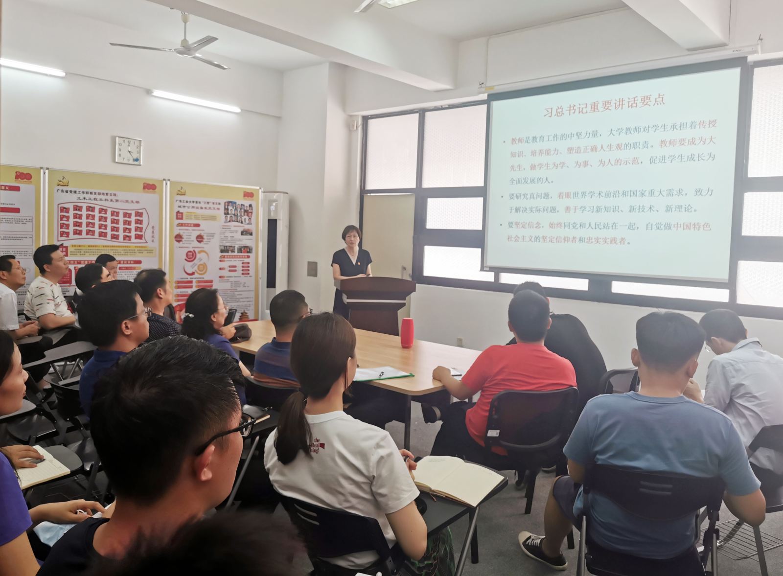 会议首先学习了习近平总书记在清华大学考察时重要讲话精神,大家在观看习近平总书记在清华大学考察的相关学习视频后,从总书记的重要讲话要点和对广大青年的嘱托两方面展开学习。邓俊同志表示,习近平总书记在清华大学考察时的重要讲话为新时代高等教育、高校教师提出了新的要求,对新时代青年提出了“立大志、明大德、成大才、担大任”的殷切期望。我们要坚守教育初心使命,准确把握新发展阶段,加强对“世界百年未有之大变局”和“高等教育领域的百年未有之大变局”的局势的认识,立足岗位,埋头苦干,为服务国家富强、民族复兴、人民幸福贡献力量。
