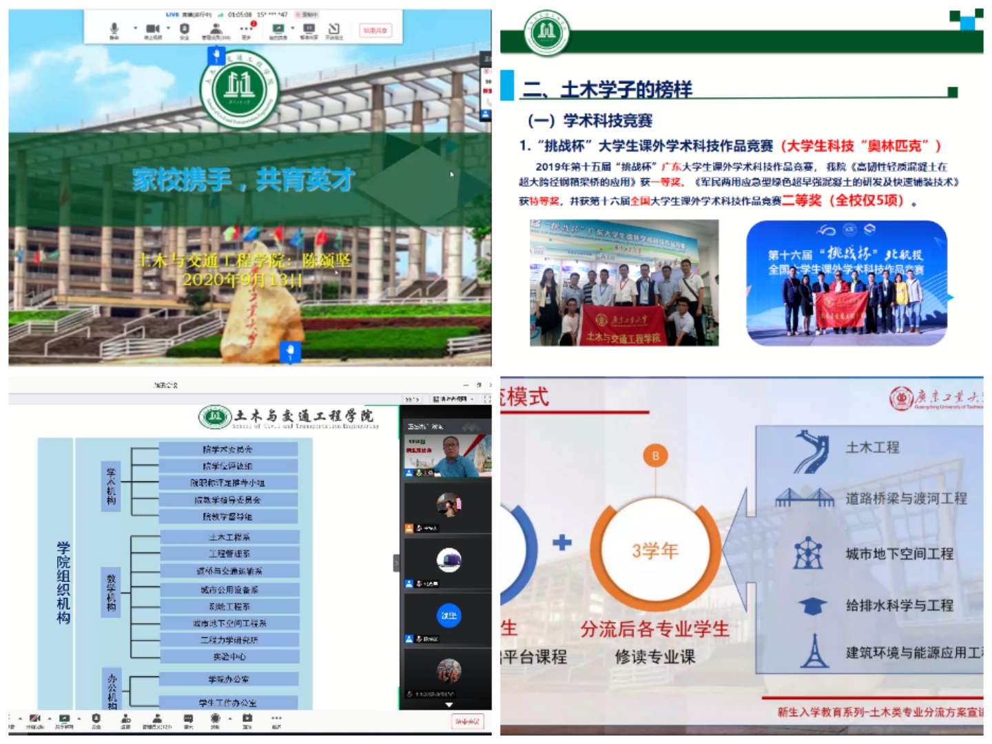 9月13日下午,我院举行了线上家长会,院长刘锋、党委副书记陈颂坚、副院长何嘉年分别就校史院情、学院学生工作、土木专业分流情况和家长们进行了交流。