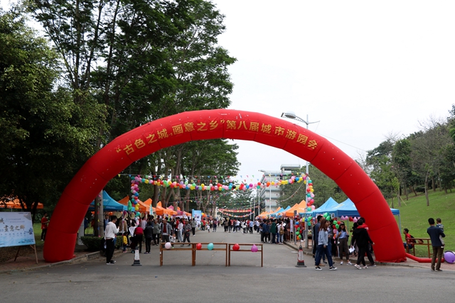 上午10:00,伴随着锣鼓声、礼炮声,第八届城市文化游园会正式拉开帷幕!两头炯炯有神的舞狮踏着稳健而又灵活的步伐一一问候各个城市队伍的摊位,仿佛被一个个摊位的特色文化所吸引。渐渐地,城市文化游园会热闹起来了,来参加的不仅仅有在校学生,还有老师带着一家老小前来参加这场文化盛会。