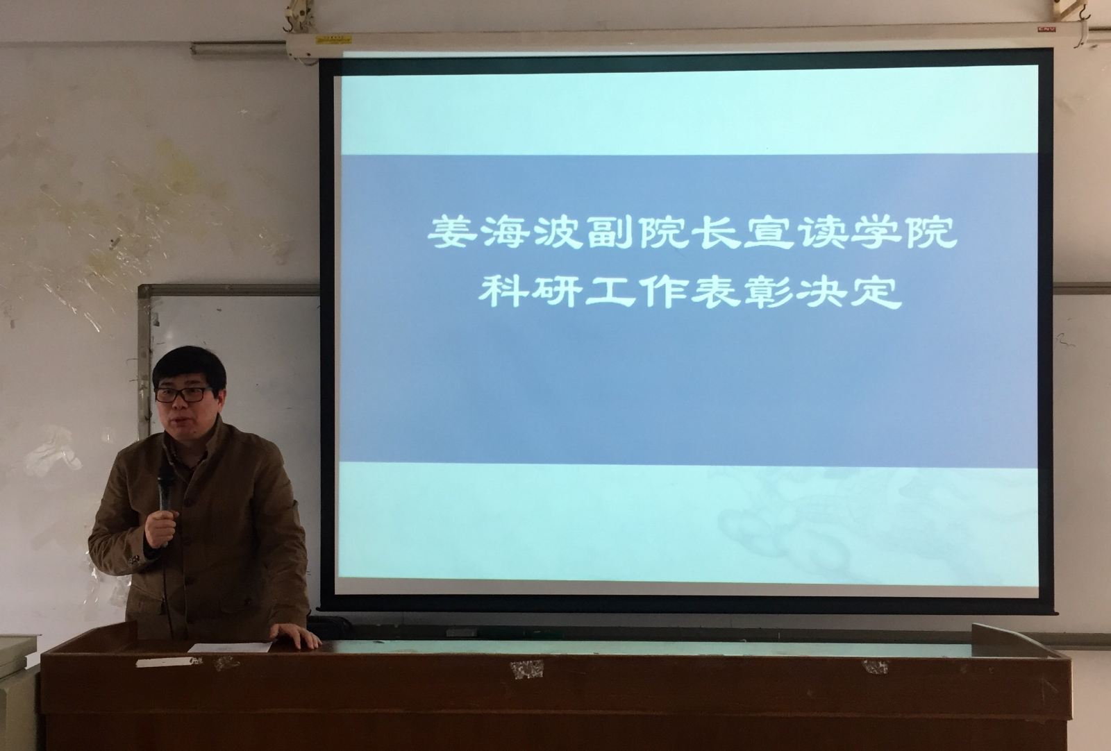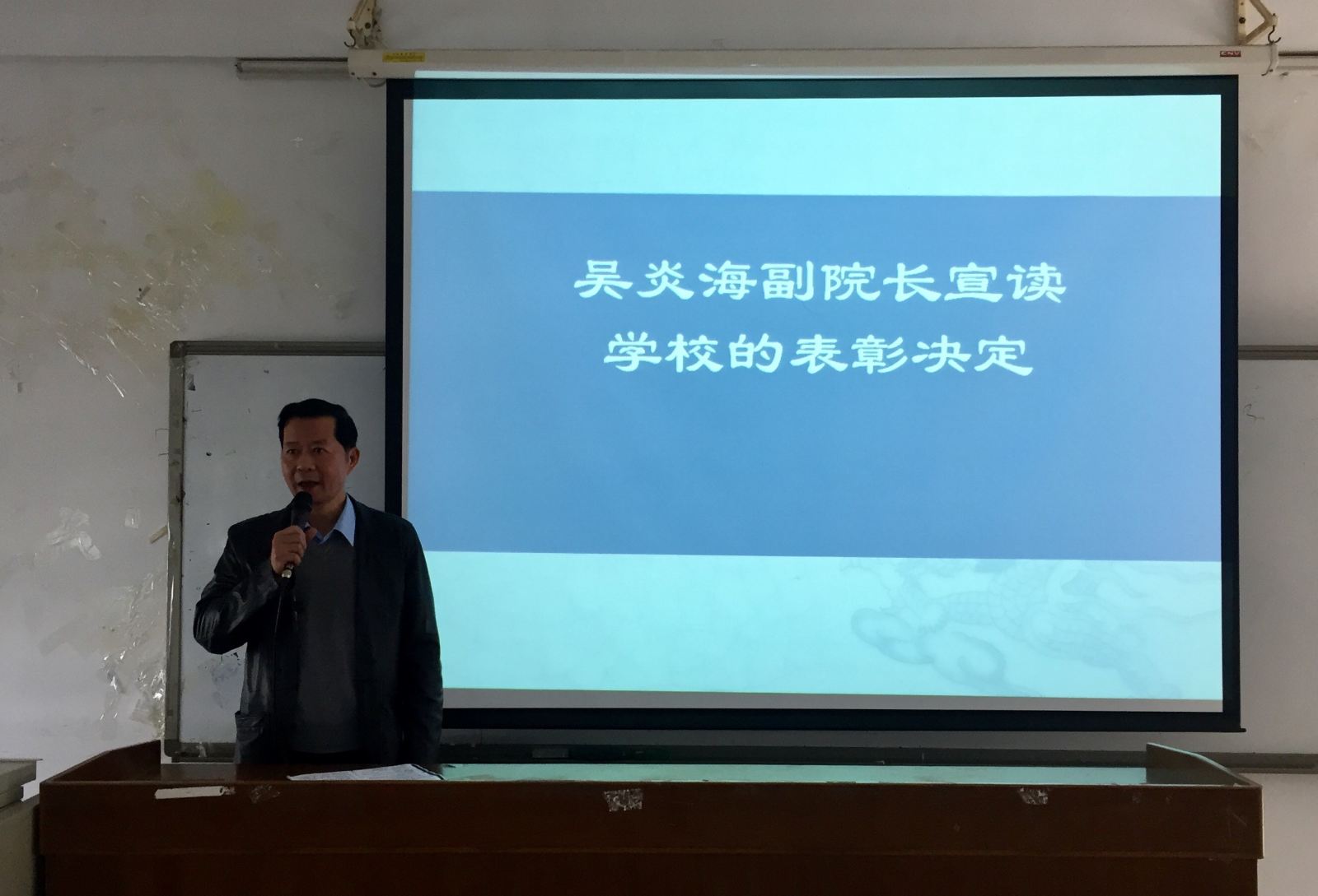 吴炎海、姜海波分别宣读了学校关于表彰学院优秀教学工作者、优秀科研工作者及单位的决定。陈立中副校长、学院领导为获奖的老师颁奖。