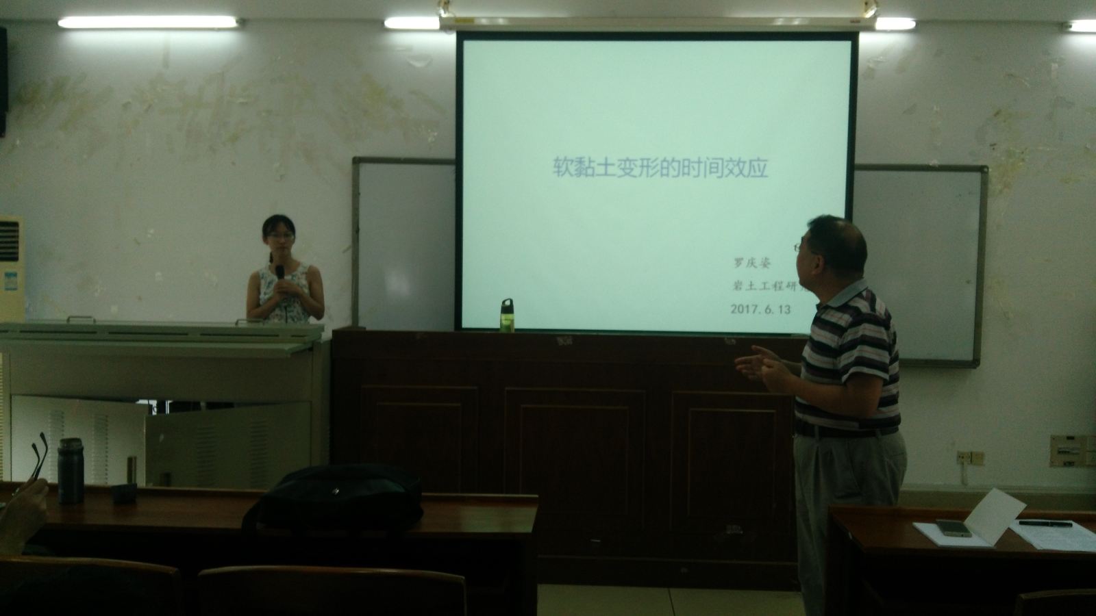 为提升我院学术气氛,促进教师间的科研思想交流,提高我院科研水平,2017年6月12日下午,学院第6期科技交流系列讲座在实验二号楼520会议室举行。本期讲座邀请我院岩土工程研究所罗庆姿博士为大家做了“软黏土变形的时间效应”的学术报告。