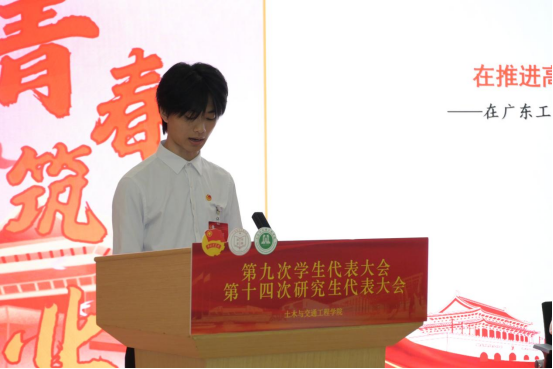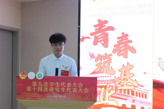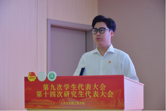 学院团委书记刘思利受学院党委委托在大会发言,她充分肯定了过去一年的工作并对与会学生代表提出三点工作要求,勉励土木学子在奋发努力中砥砺前行,奋力书写为中国式现代化挺膺担当的青春篇章。校学生会代表肖振雄、校研会主席团成员李宇轩肯定了我院学生会、研究生会过去一年在思想引领、学术科技、学风建设等方面的工作成效。期望我院学生会、研究生会以提升同学满意度为核心,进一步加强政治建设,深化学研改革,增强组织“三性”,塑造理想清新的组织形象。