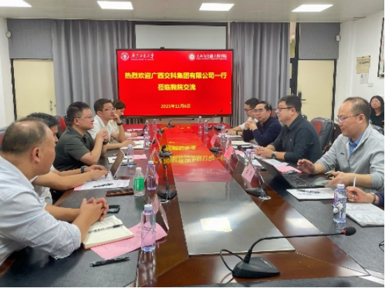 与广西交科集团有限公司于11月6日在实验二号楼502室成功召开科研合作暨人才培养交流会议。会议由院长赵志伟主持,广西交科集团有限公司副总经理熊剑平、科技研究院院长张仰鹏、学院副院长杜星、土木工程系主任梁仕华及企业和学院教师代表参会。