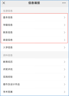”企业号,进入“学生工作管理”,点击菜单“学生中心”—“主界面”,点击右上角“个人信息”,进入个人信息填报界面,如下图所示。