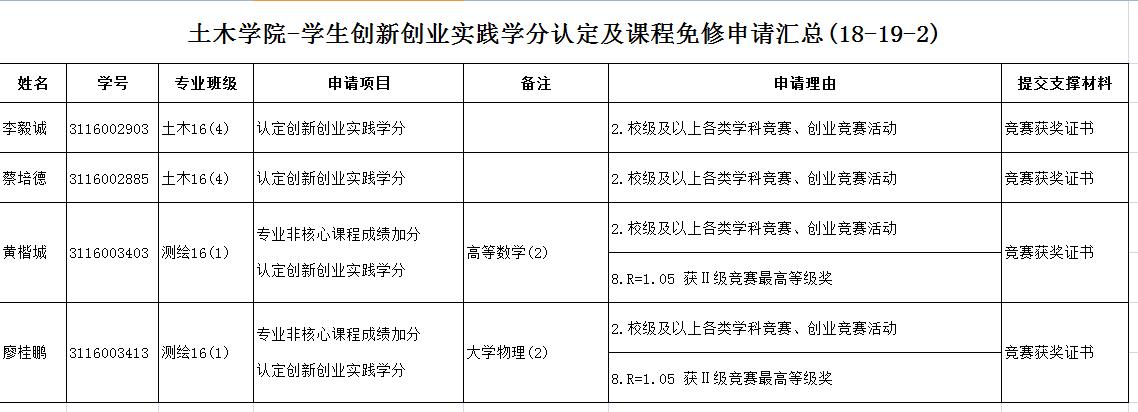 根据教务处《关于做好2018-2019学年度第二学期本科生申请创新创业实践学分认定及课程加分、免修等工作的通知》的精神,我院对照《漫画柜 创新创业实践学分认定及课程免修实施暂行办法》对学生递交的申请进行初审,现公示如下。