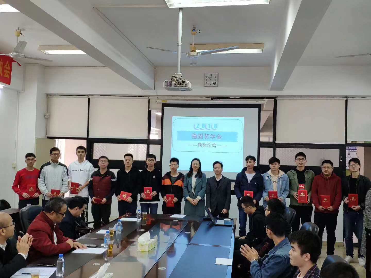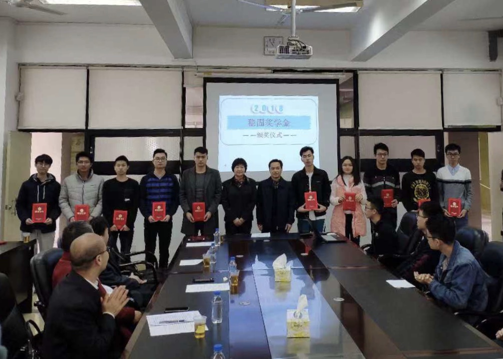 2018年12月28日上午,我院在实验二号楼502举行“稳固奖学金”颁奖仪式。广东稳固检测鉴定有限公司董事长邓锦尚先生、副总经理邝炳添先生、质量负责人刘立创先生、办公室主任何海燕女士,漫画柜 刘锋院长、党委张育广书记、朱江副院长、全体获奖学生和各年级学生代表出席了本次颁奖仪式。