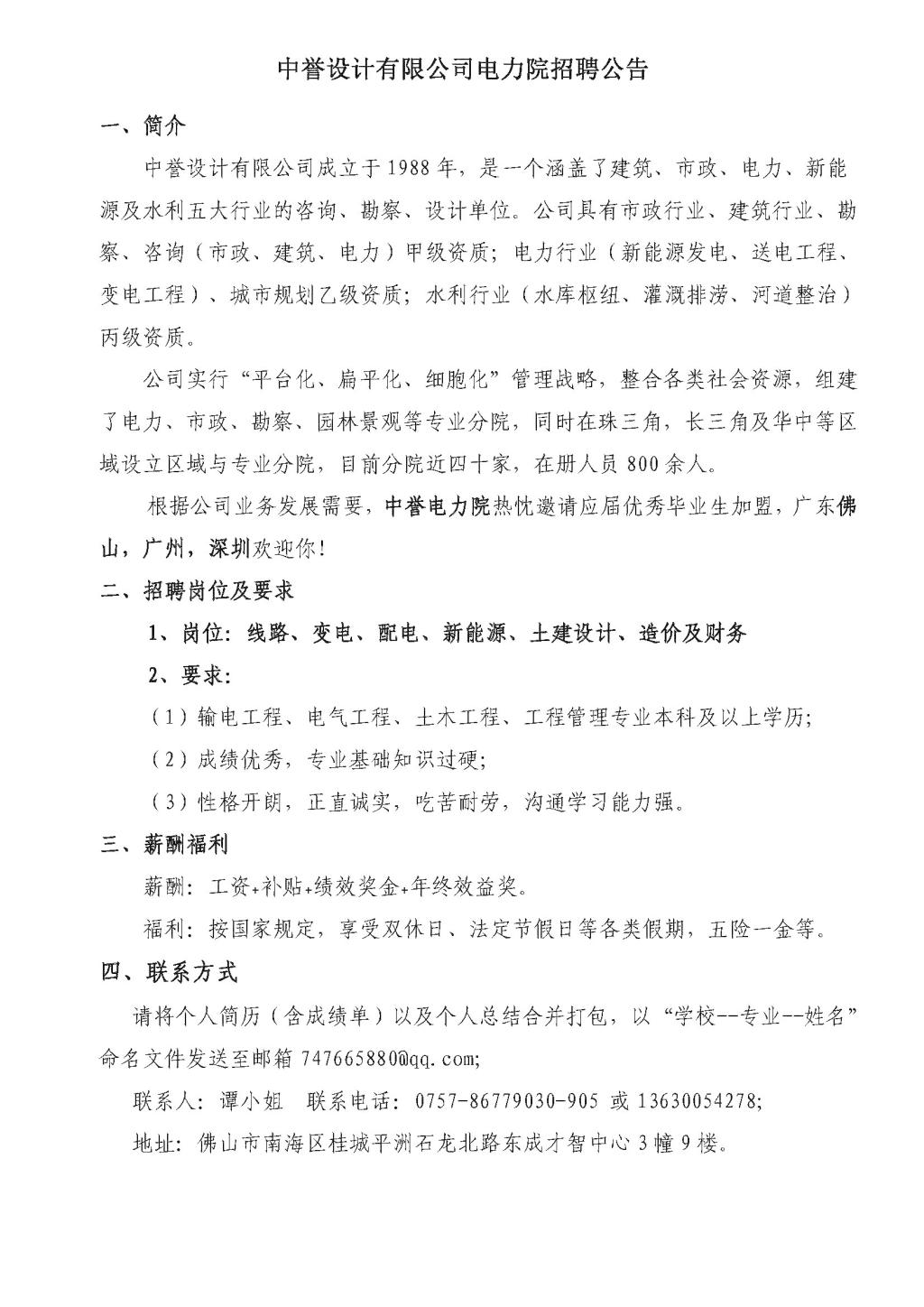 中誉设计有限公司电力院招聘