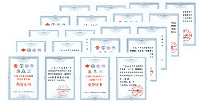 学生参加首届“全国大学生结构设计大赛信息技术大赛”获全国第一,获得了一等奖3项,二等奖3项,三等奖2项,优胜奖2项