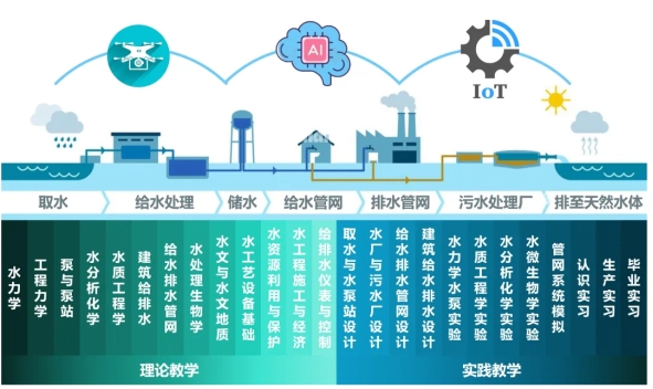 给排水科学与工程专业紧密围绕国家生态文明建设的战略需求,一方面积极响应“水十条”等法规政策,关注水资源的可持续利用和环境保护,致力于提高水资源利用效率,减少水污染;另一方面,服务于“十四五”规划及二〇三五年远景目标,特别是在城市更新工程建设、水资源开发与管理、水环境治理等方面。近年来,本专业在传统的水质净化与输配方向上衍生出一些新技术领域: